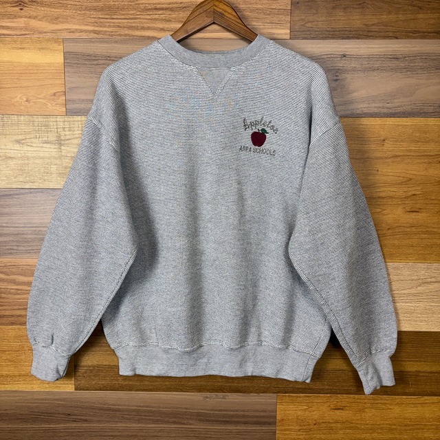 90s LUNA PIER Apple リンゴ 刺繍 前V スウェット サイズ メンズ L 90年代 VINTAGE ビンテージ ヴィンテージ ストリート アメカジ 古着 r26010997【スウェット】/グレー