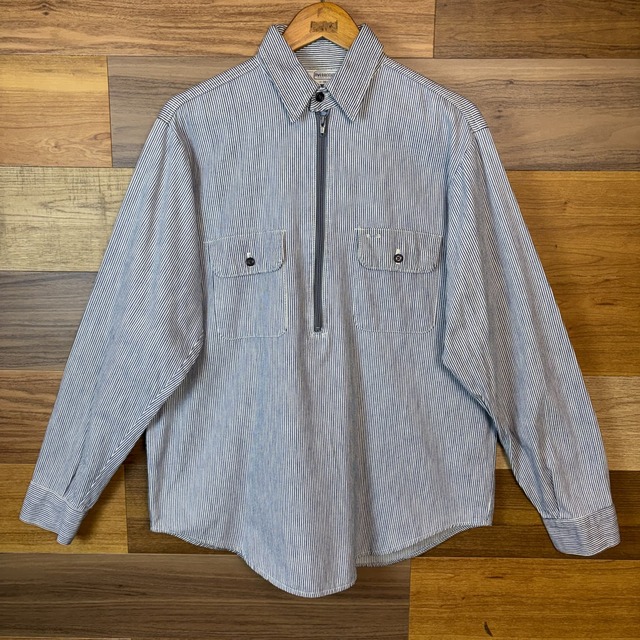 USA製 80s FIVEBROTHER チョコチン ハーフジップ ヒッコリー 長袖シャツ サイズ メンズ M アメリカ製 80年代 VINTAGE ビンテージ ヴィンテージ ストリート アメカジ 古着 r26010943【長袖シャツ】/その他