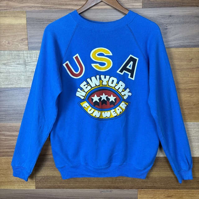USA製 80s NEW YORK FUN WEAR スーベニア スウェット サイズ メンズ M アメリカ製 80年代 VINTAGE ビンテージ ヴィンテージ ストリート アメカジ 古着 r26010974【スウェット】/ブルー