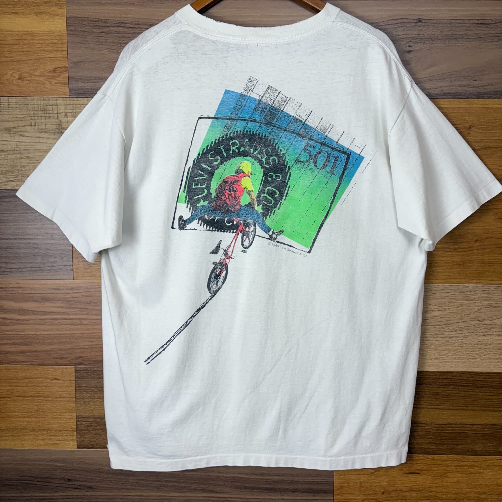 80s Levi's リーバイス 501 グラフィック アート デザイン T-sh Tシャツ サイズ メンズ XL位 シングルステッチ 80年代 VINTAGE ビンテージ ヴィンテージ ストリート アメカジ 古着 r25070831