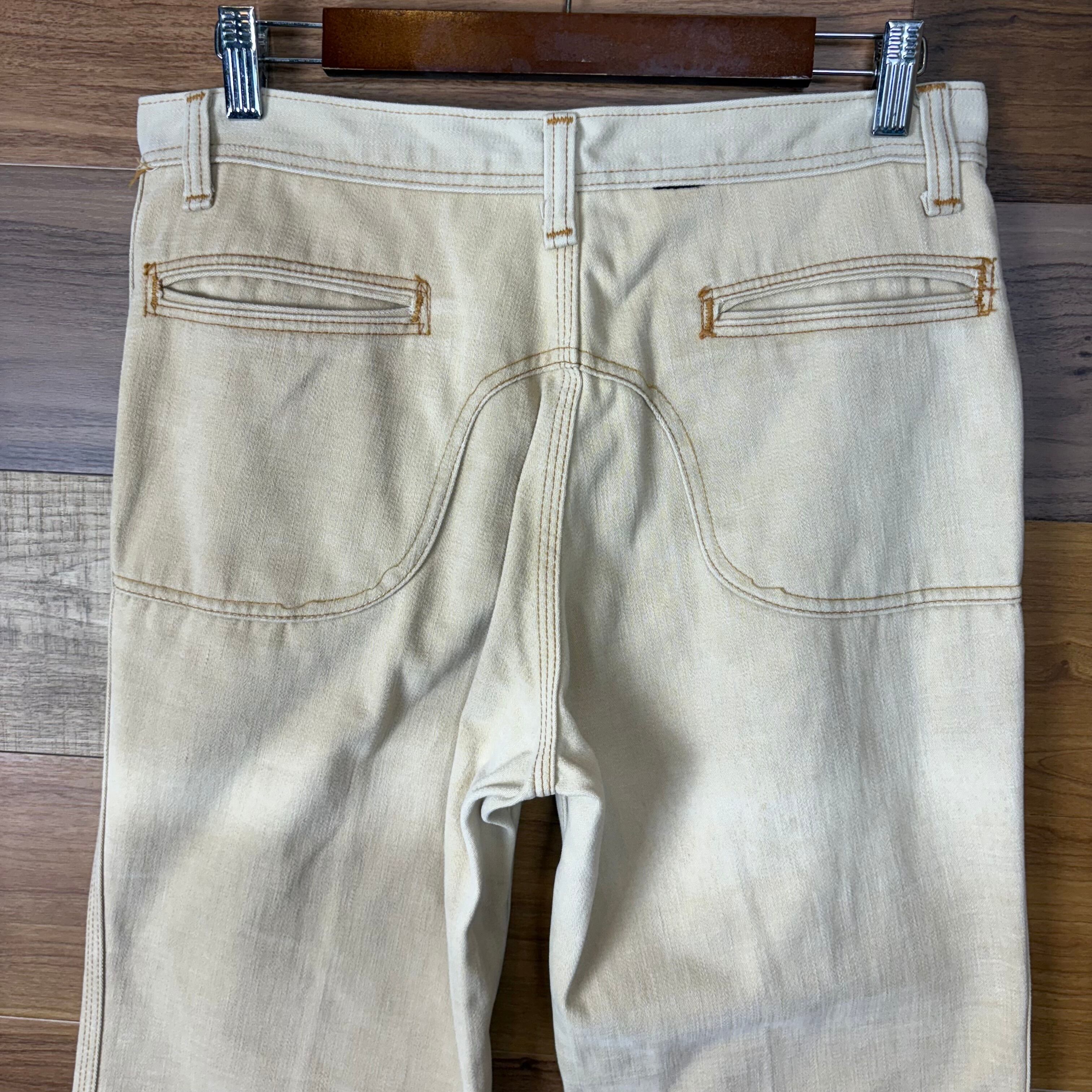 実寸:ウエスト平置き40cm 股上36cm 股下79cm ワタリ幅30cm 裾幅29cm サイドシーム全長総丈105cm