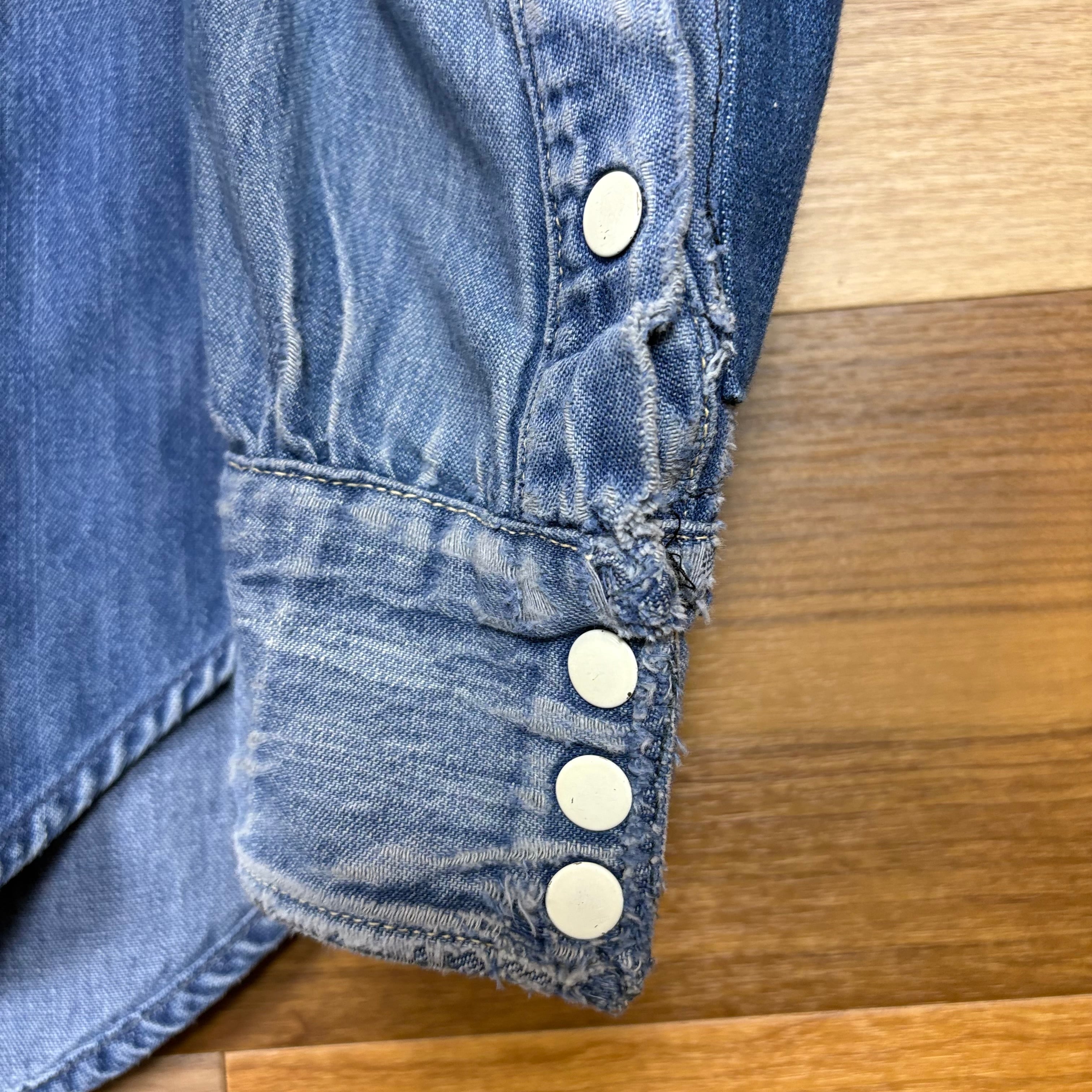 60s Sears Roebucks シアーズ ローバック トップボタン スナップ デニム シャツ サイズ メンズ L位 60年代 VINTAGE ビンテージ ヴィンテージ ストリート アメカジ 古着 r25071798【長袖シャツ】/ブルー
