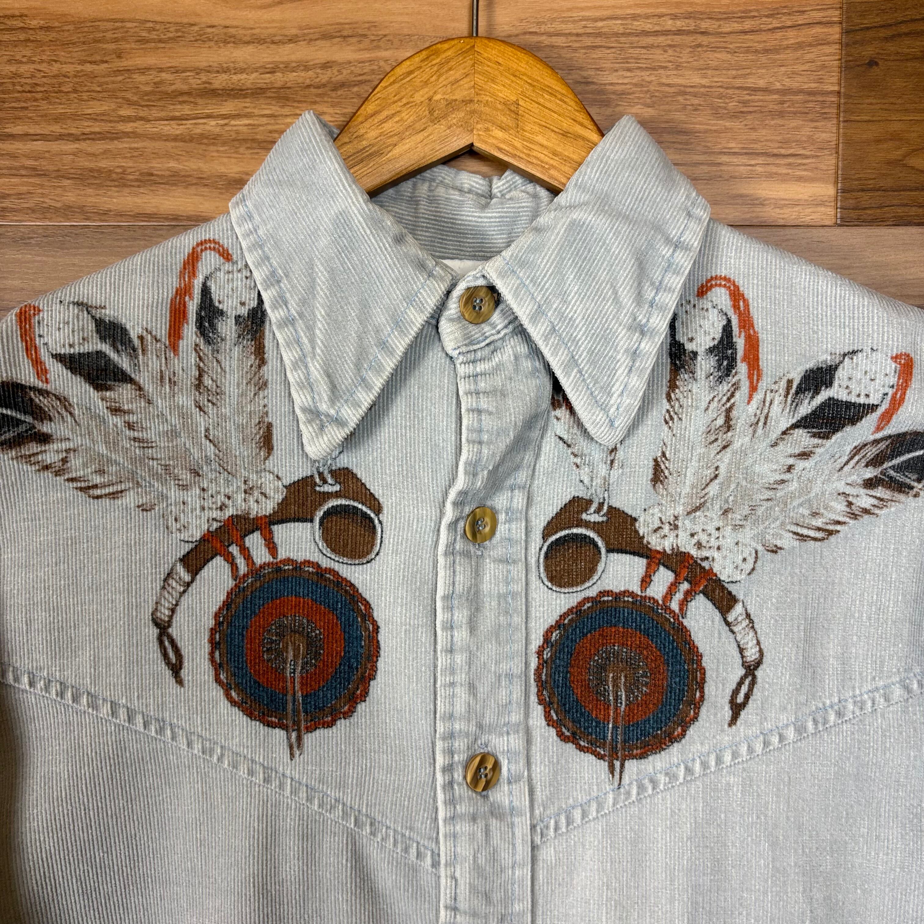70s Montgomery Ward モンゴメリーワード プリントコーデュロイ シャツ 長袖シャツ サイズ メンズ M 70年代 VINTAGE ビンテージ ヴィンテージ ストリート アメカジ 古着 r25082116