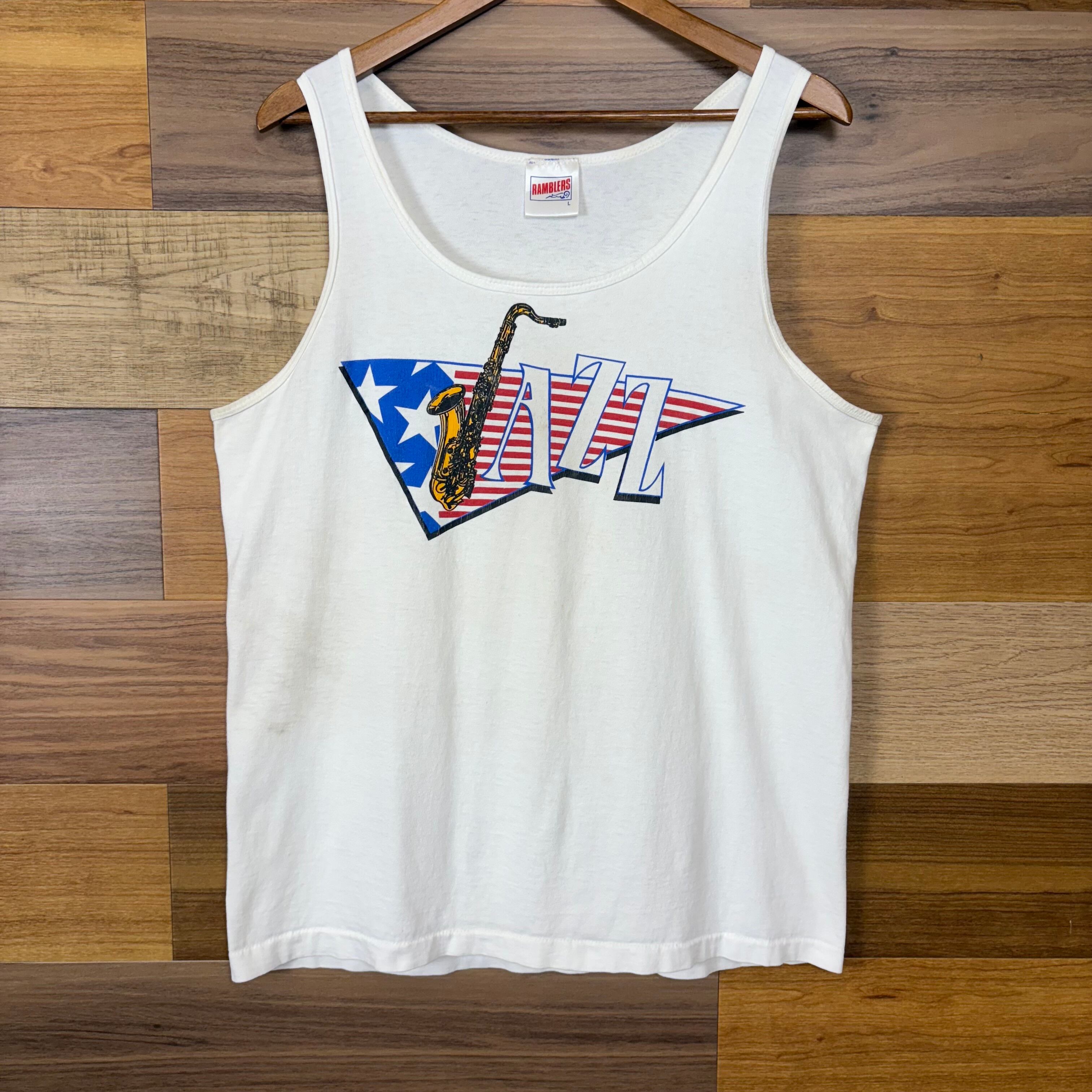 90s RAMBLERS JAZZ プリント タンクトップ サイズ メンズ L 裾シングルステッチ 90年代 VINTAGE ビンテージ ヴィンテージ ストリート アメカジ 古着 r25082131