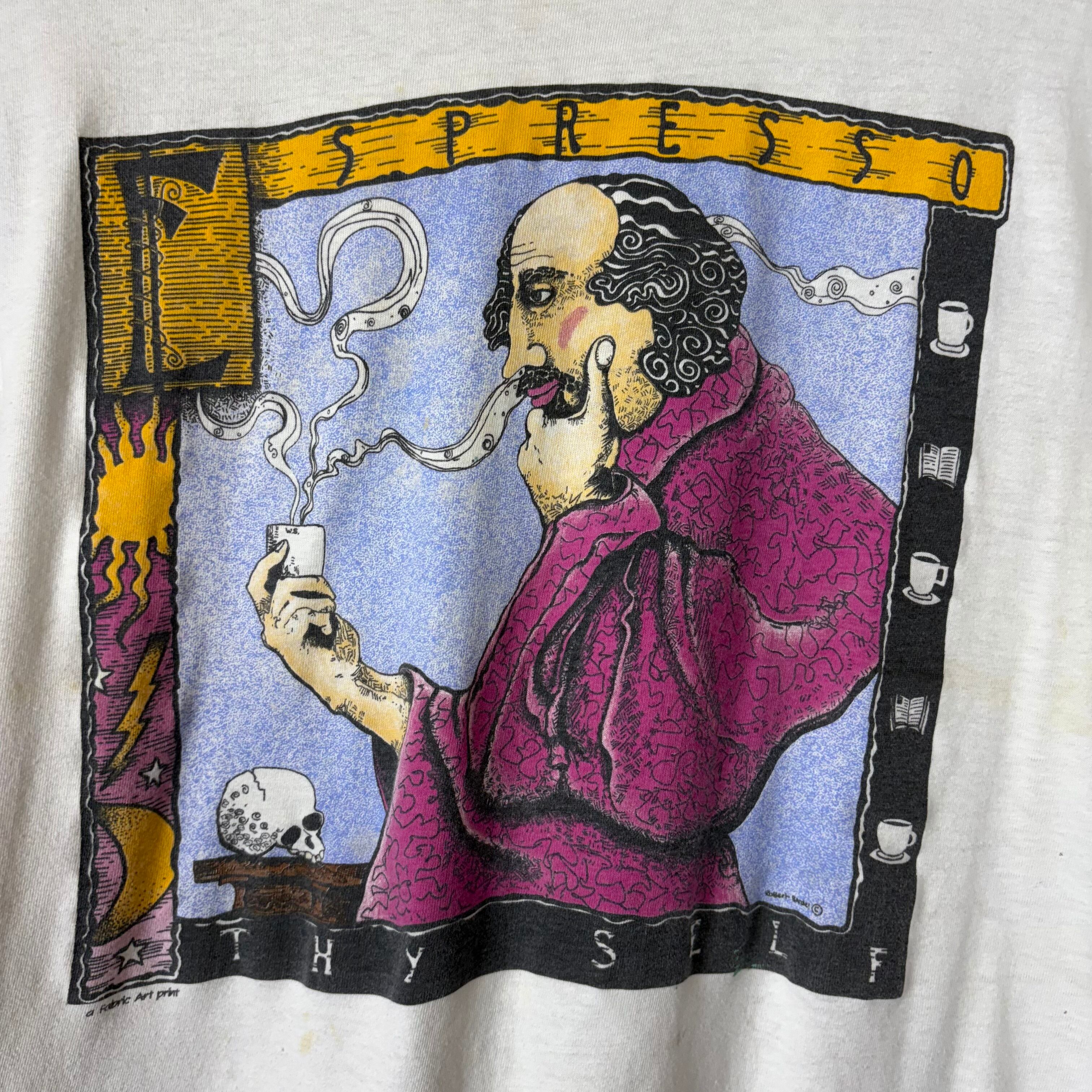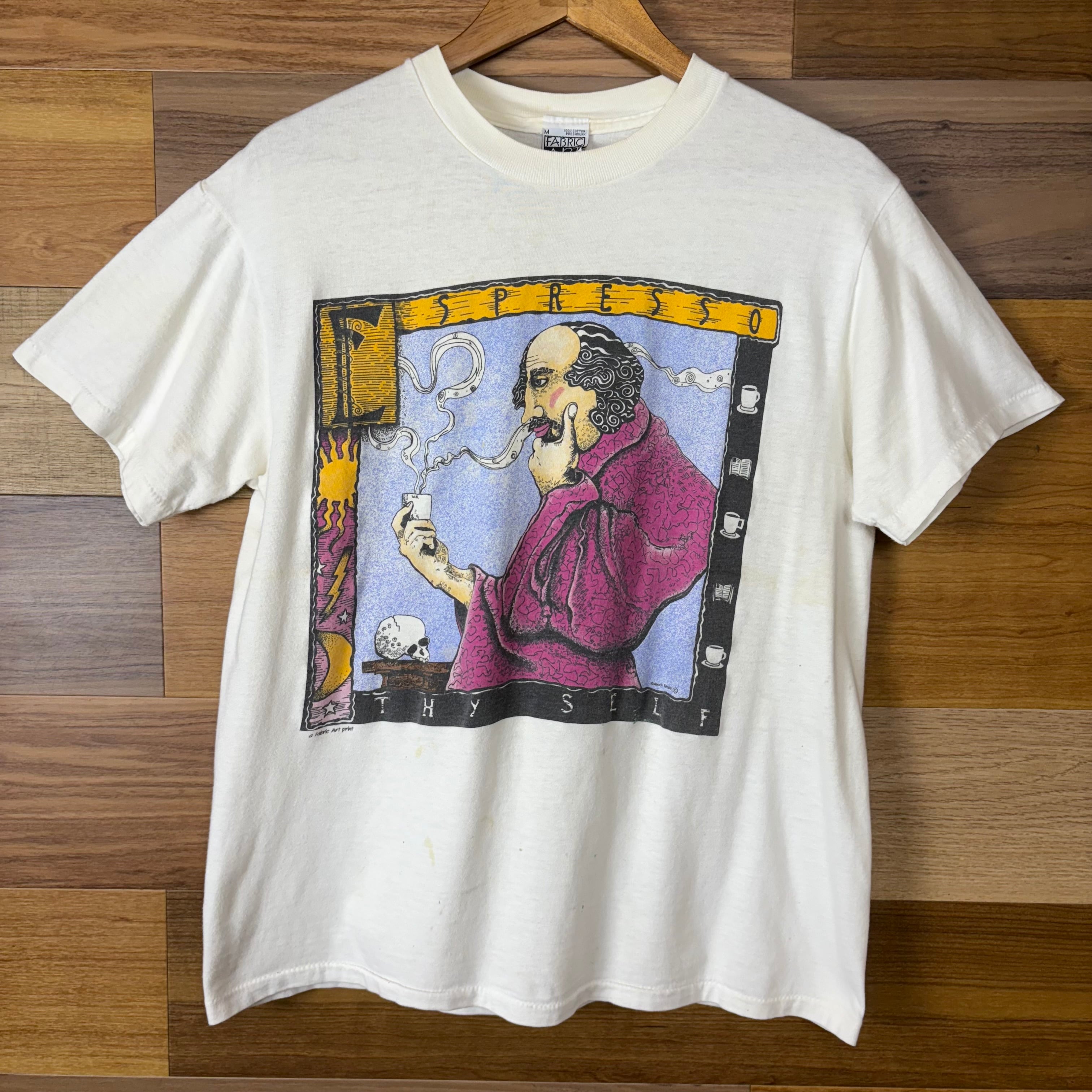 USA製 90s エスプレッソ ソムリエ アート T-sh Tシャツ サイズ メンズ M シングルステッチ アメリカ製 90年代 VINTAGE ビンテージ ヴィンテージ ストリート アメカジ 古着 r25090403