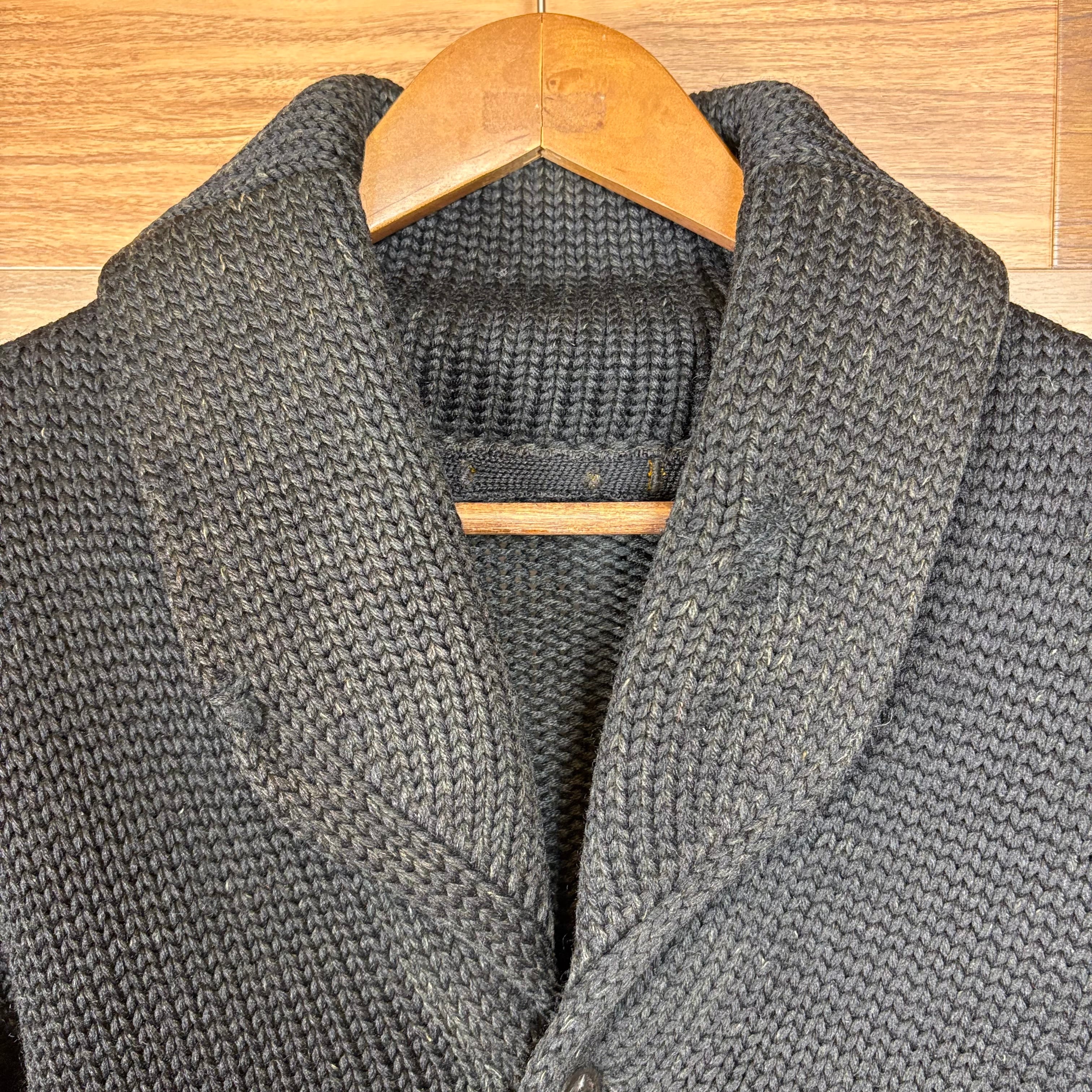30s~40s 黒 ヘチマ襟 ショールカラー ローゲージ レタード カーディガン サイズ メンズ M位 30年代 40年代 VINTAGE ビンテージ ヴィンテージ アメカジ 古着 r25112815