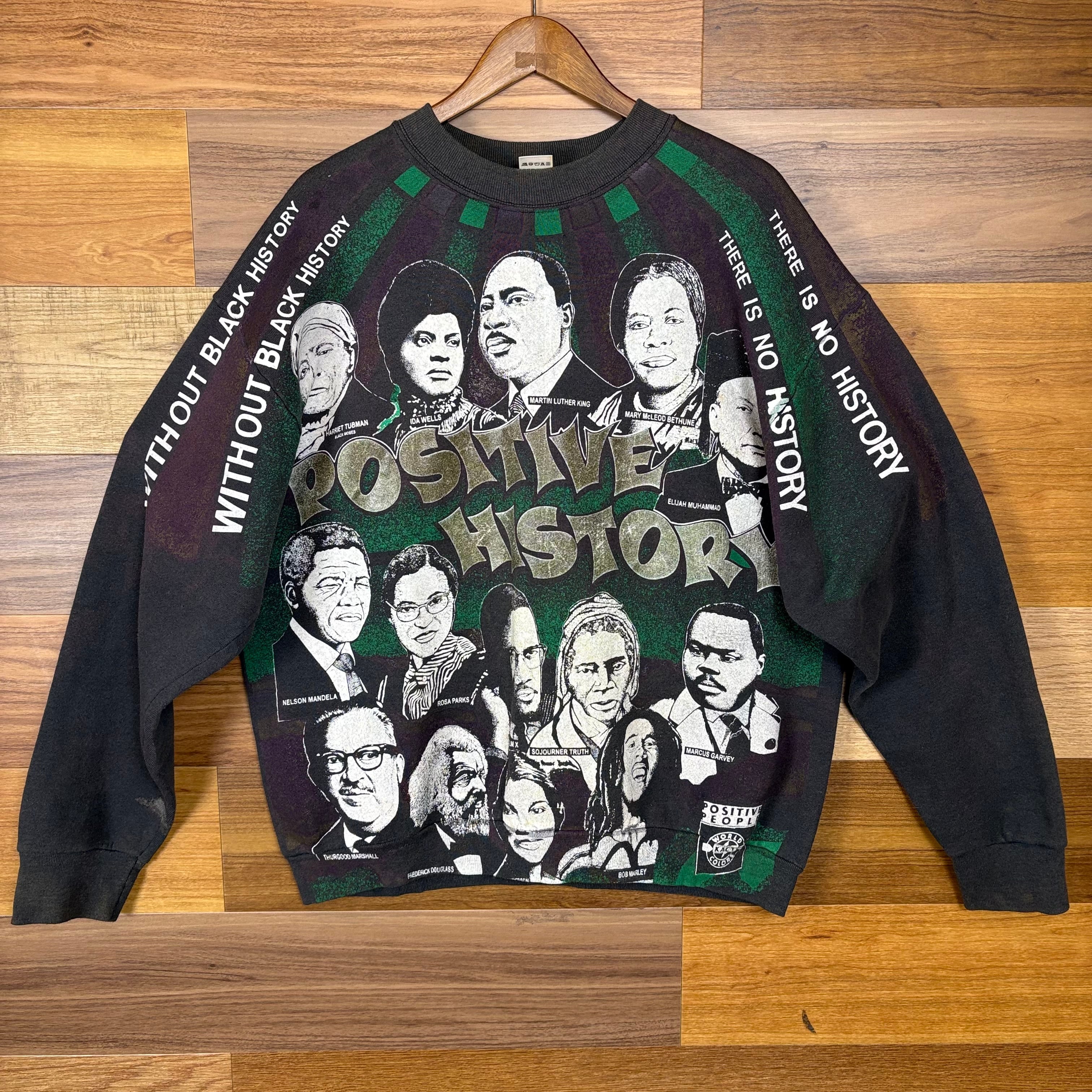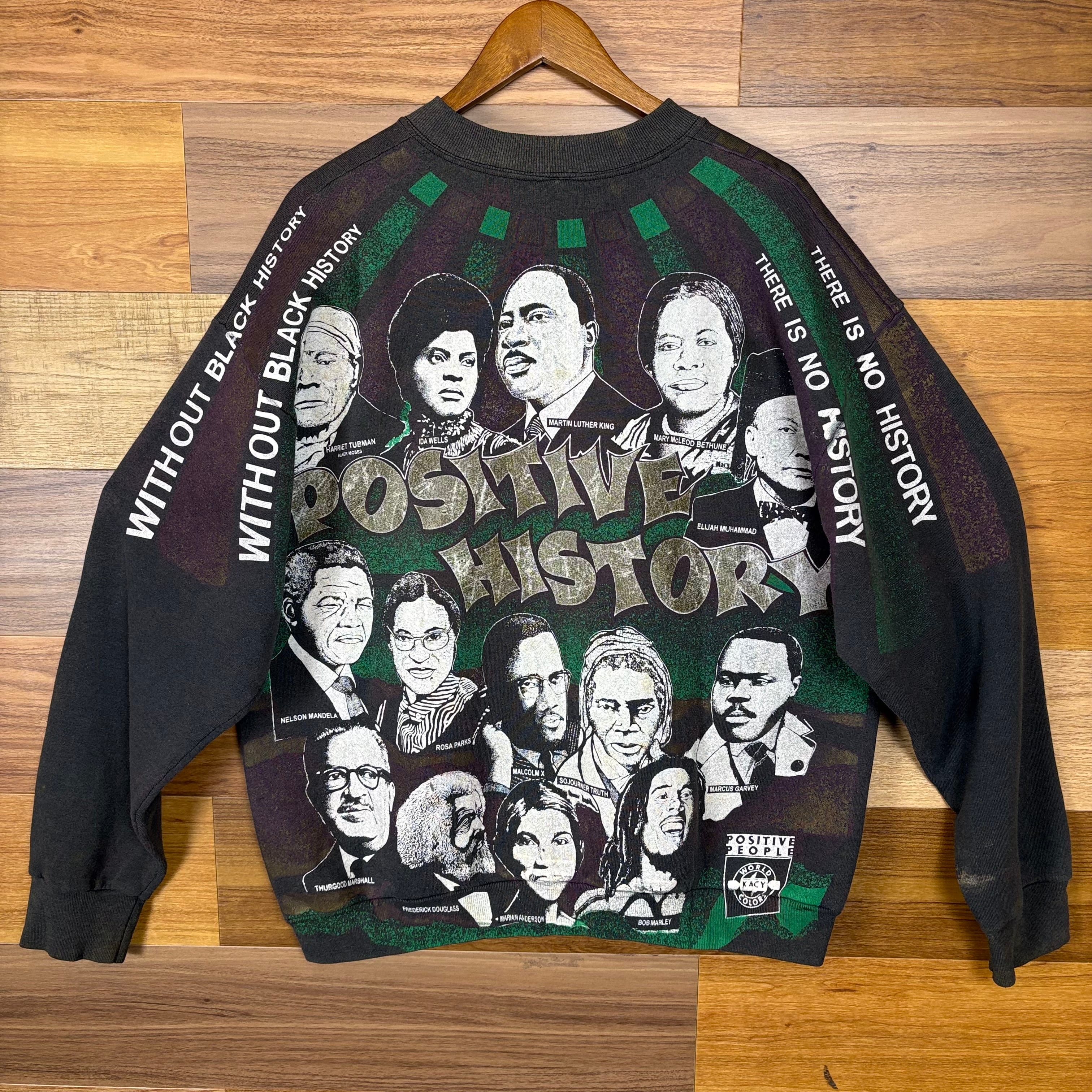 USA製 90s Kacy World Colors POSITIVE HISTORY 偉人 オールオーバー プリント スウェット スエット サイズ メンズ XL 90年代 アメリカ製 VINTAGE ビンテージ ヴィンテージ ストリート アメカジ 古着 r25122301