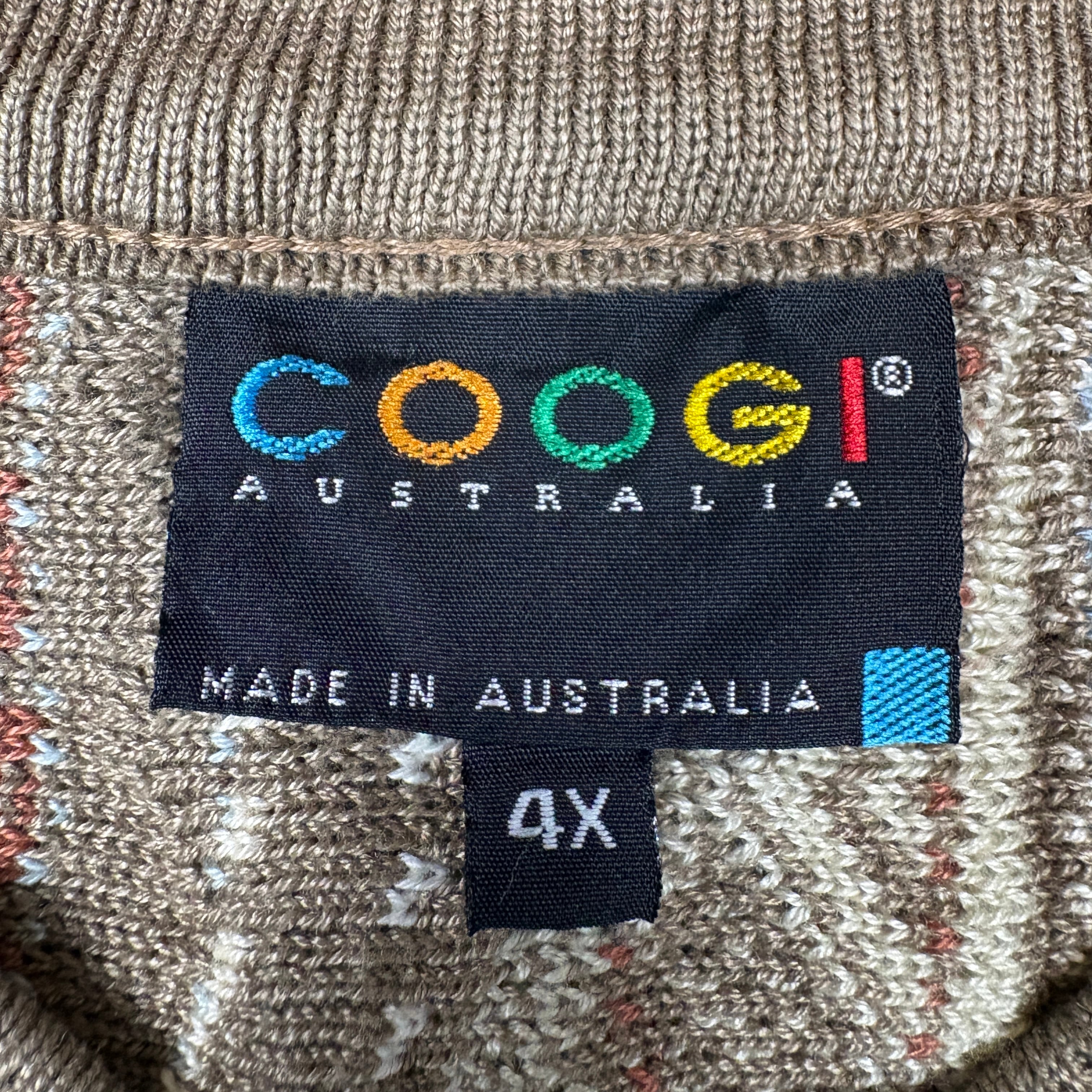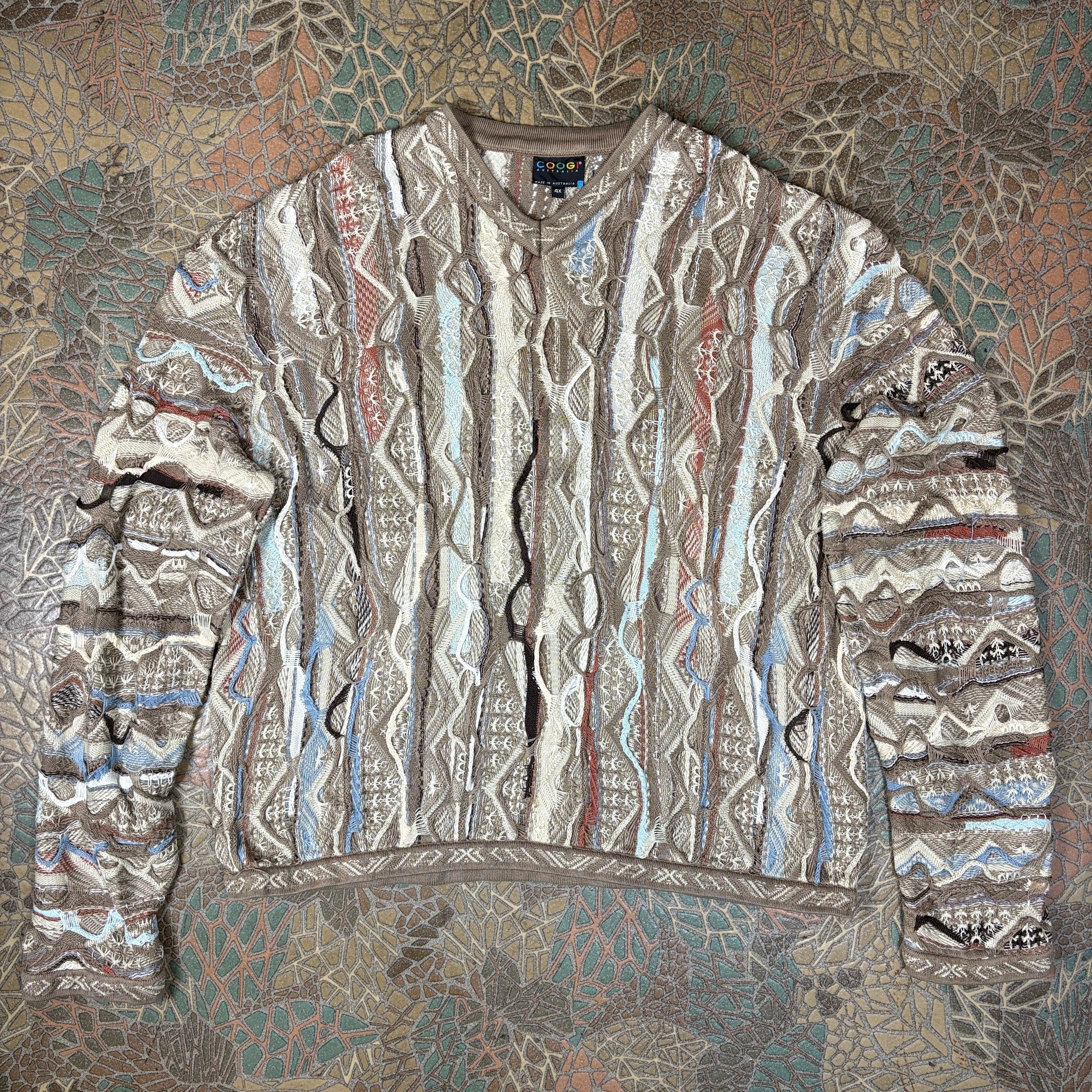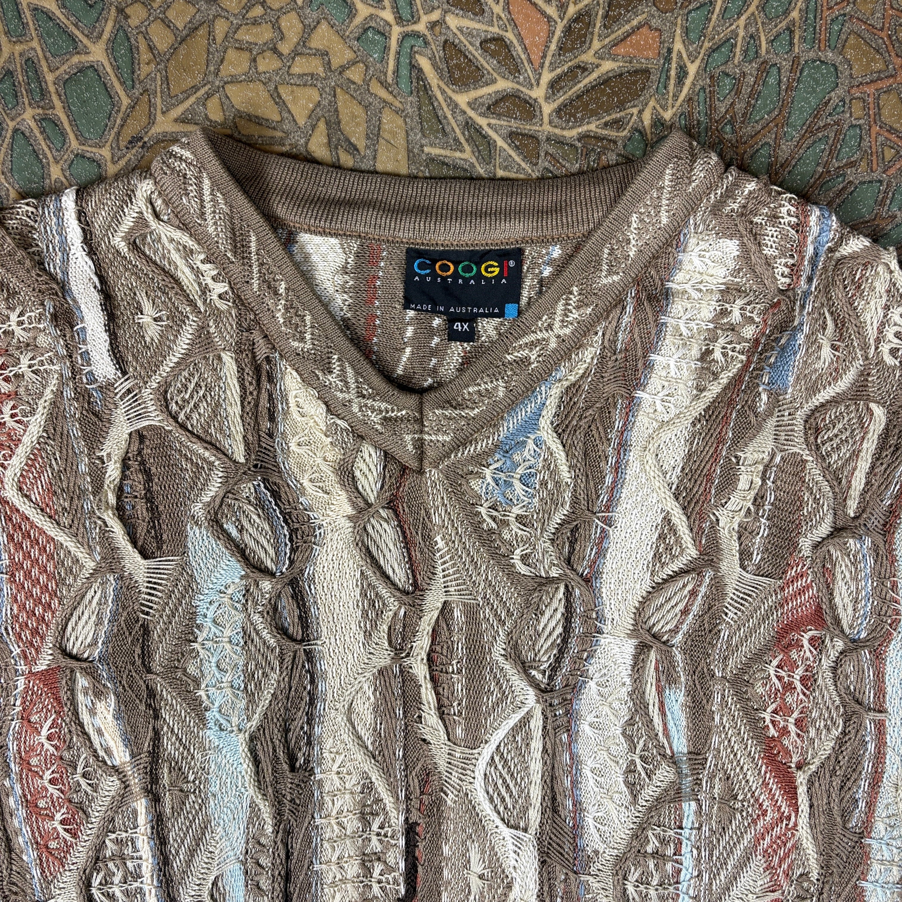 スーパービッグサイズ COOGI クージー エルボーパッチ付き 3D 立体編み込み Vネック ニット セーター サイズ メンズ 4XL VINTAGE ビンテージ ヴィンテージ ストリート アメカジ 古着 r25122343