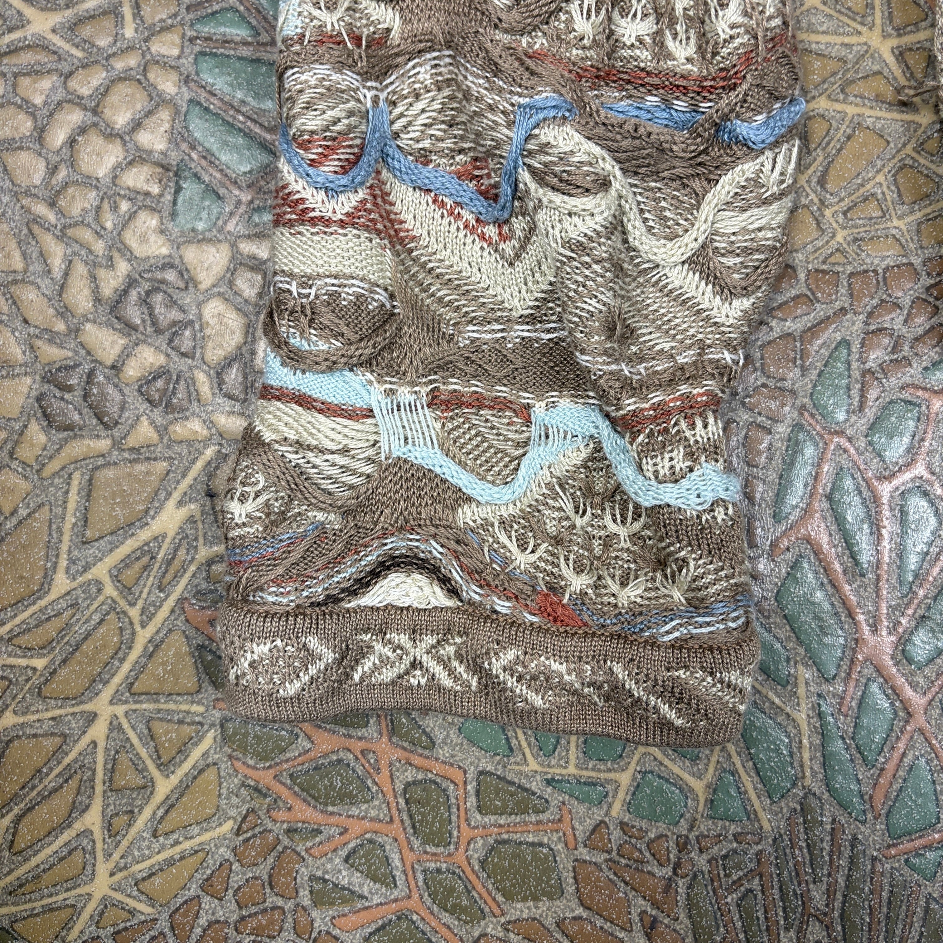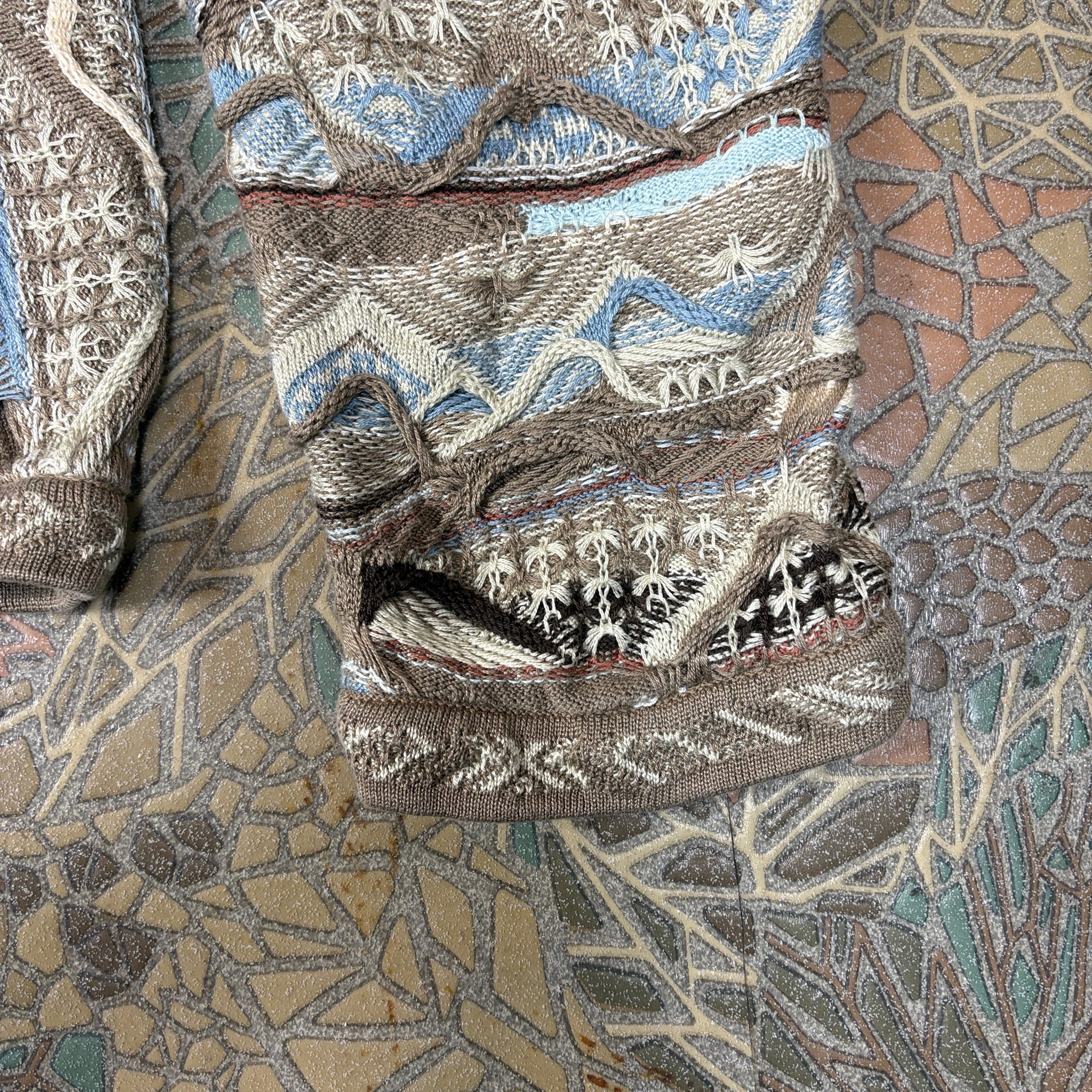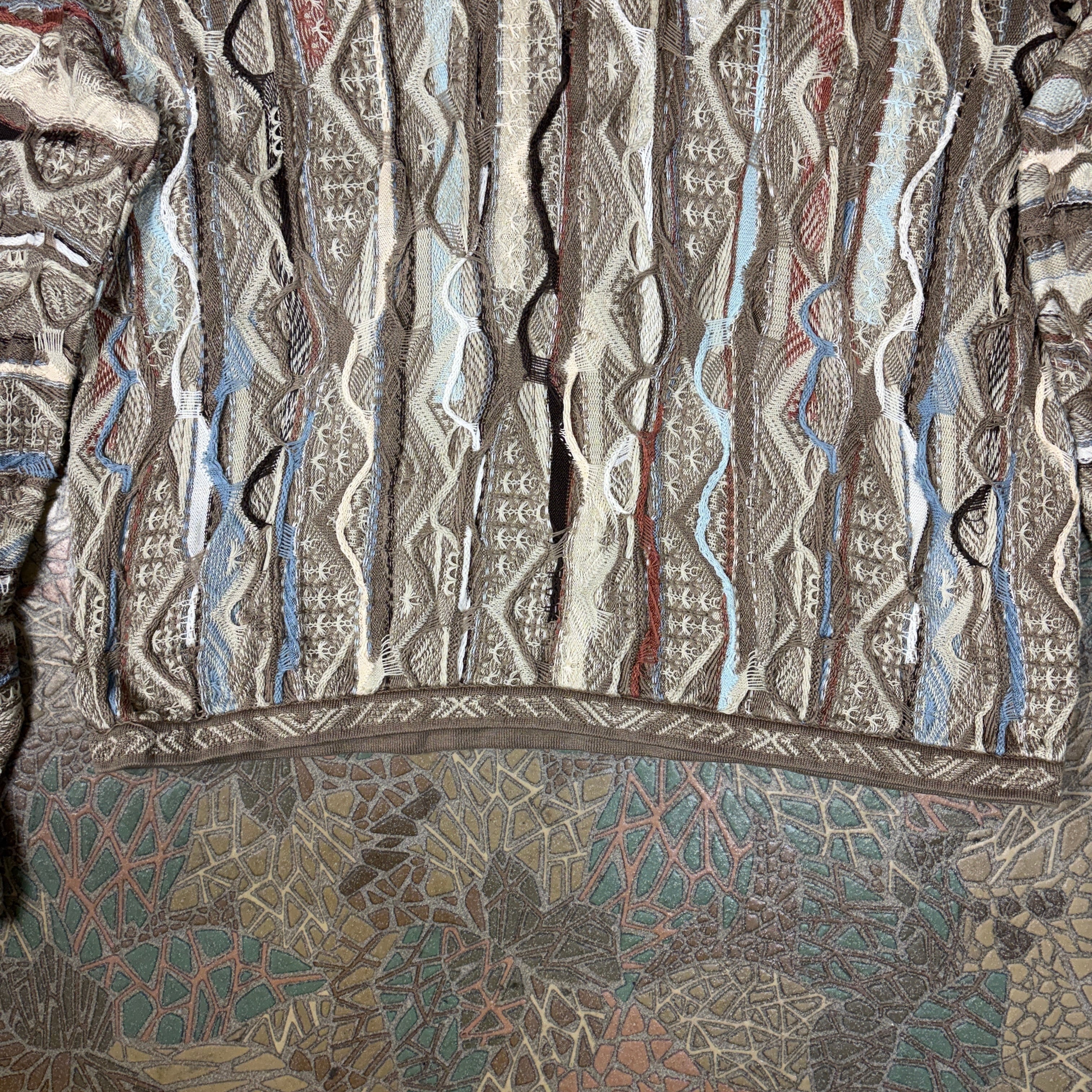 スーパービッグサイズ COOGI クージー エルボーパッチ付き 3D 立体編み込み Vネック ニット セーター サイズ メンズ 4XL VINTAGE ビンテージ ヴィンテージ ストリート アメカジ 古着 r25122343