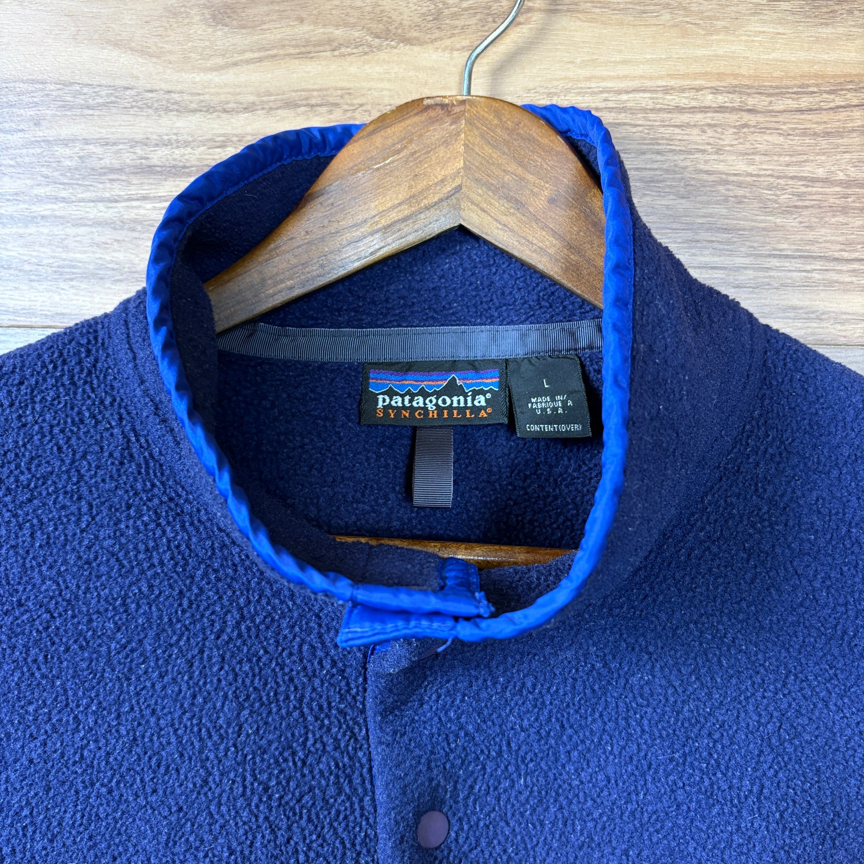 USA製 90s SP97 Patagonia パタゴニア シンチラ スナップT フリース ジャケット サイズ メンズ L アメリカ製 90年代 VINTAGE ビンテージ ヴィンテージ アウトドア ストリート アメカジ 古着 r26012244【フリースジャケット】/ブルー