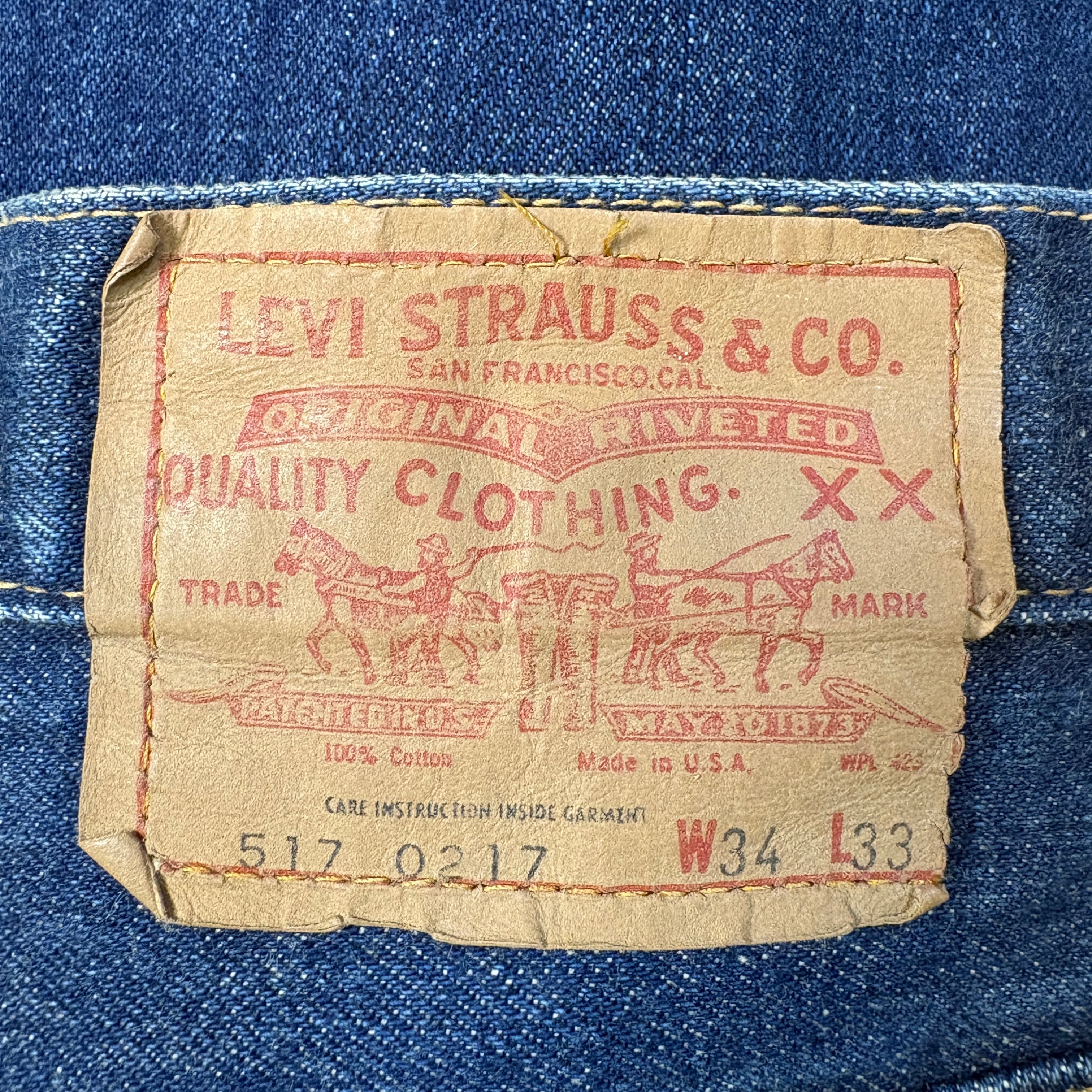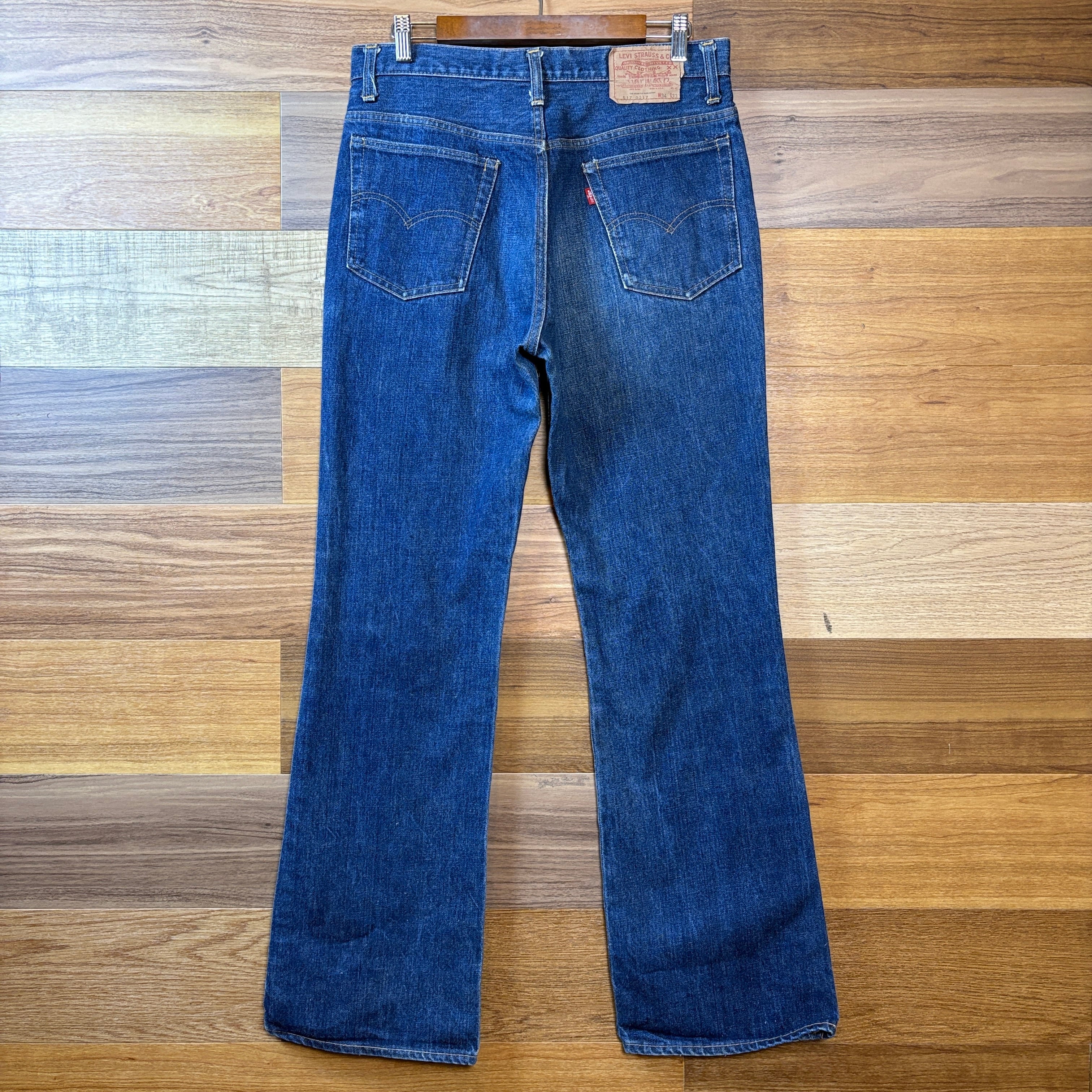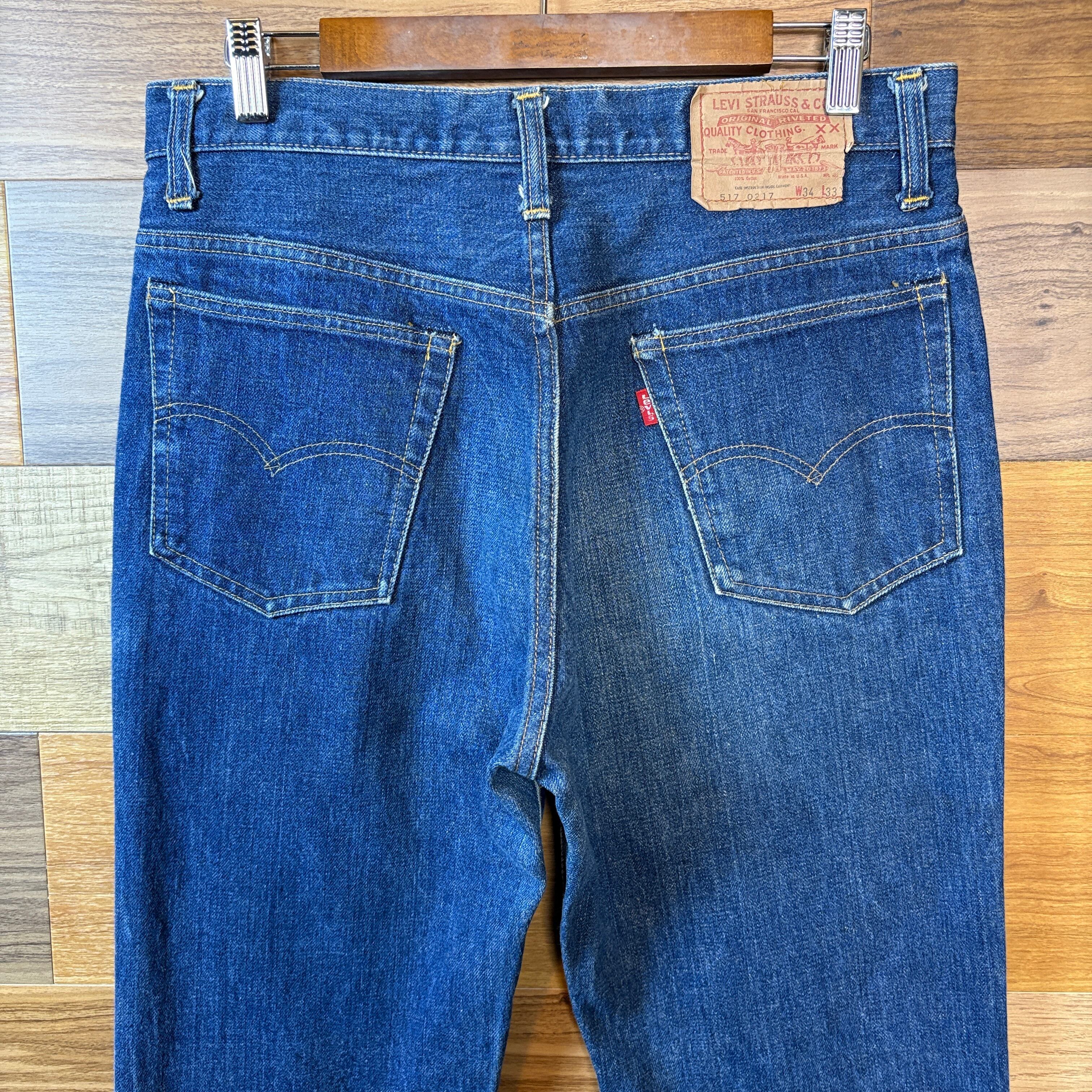 濃紺 70s Levi's リーバイス 517-0217 66前期 シングルステッチ フレアー デニム パンツ サイズ W34 L33 メンズ L位 トップボタン裏 6 70年代 VINTAGE ビンテージ ヴィンテージ ストリート アメカジ 古着 r26012257