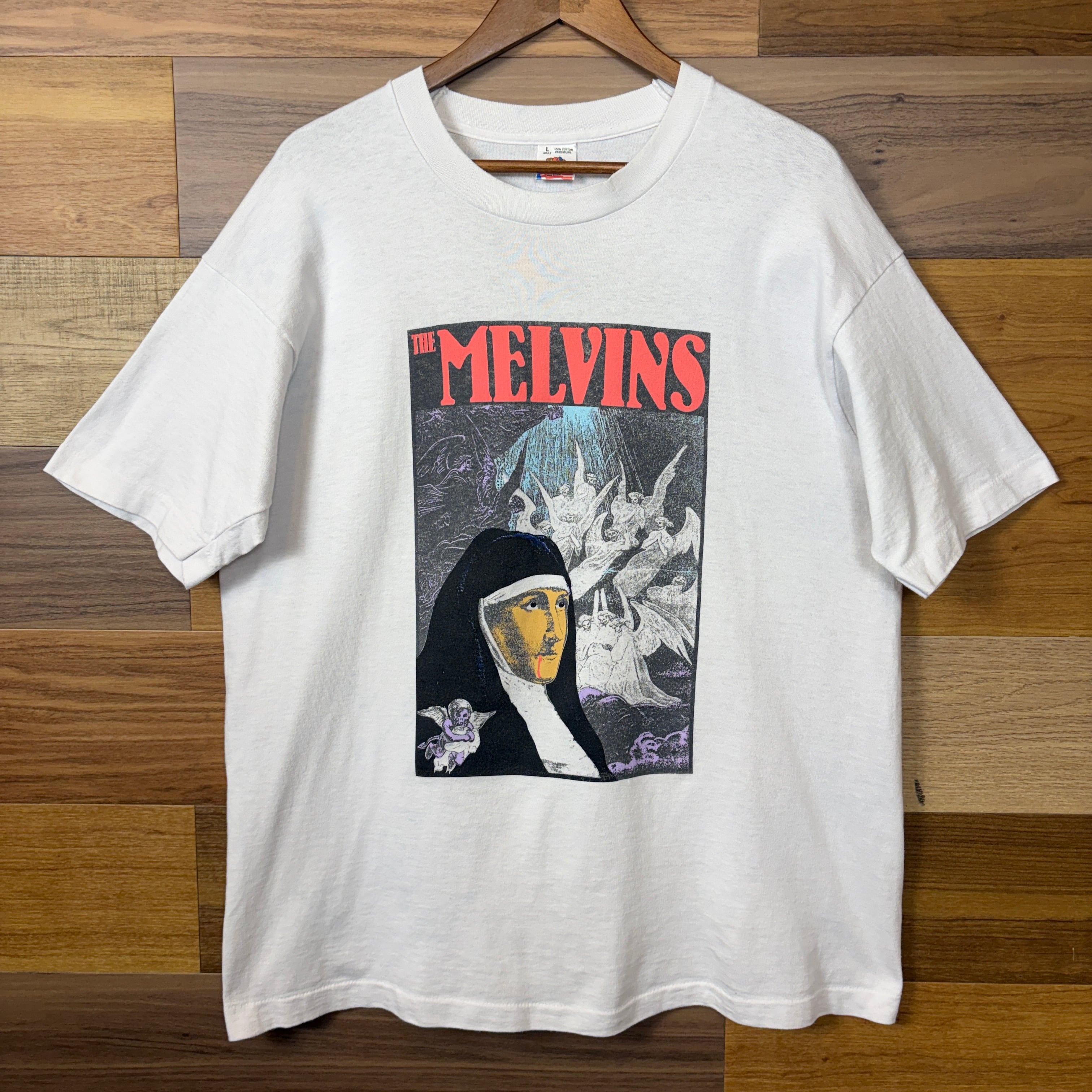 USA製 90s MELVINS × FRANK KOZIK THE NUN バンドT ロックT T-sh Tシャツ サイズ メンズ L シングルステッチ アメリカ製 90年代 VINTAGE ビンテージ ヴィンテージ ストリート アメカジ 古着 r26012295