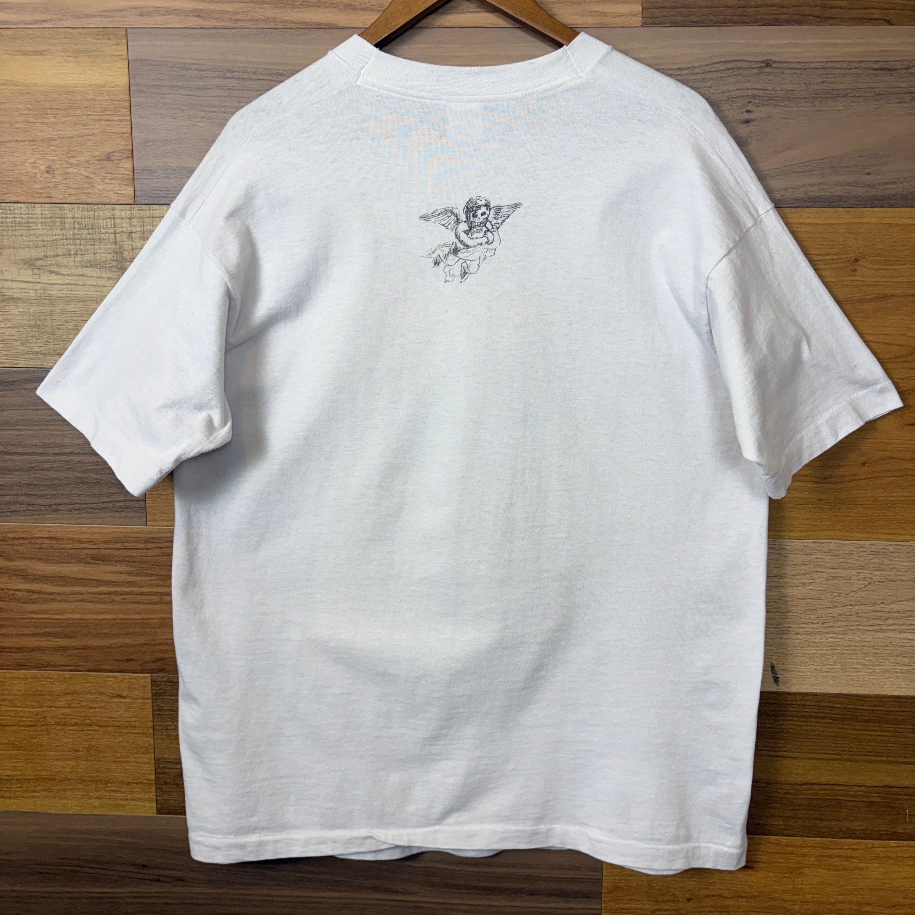 USA製 90s MELVINS × FRANK KOZIK THE NUN バンドT ロックT T-sh Tシャツ サイズ メンズ L シングルステッチ アメリカ製 90年代 VINTAGE ビンテージ ヴィンテージ ストリート アメカジ 古着 r26012295【Tシャツ】/ホワイト