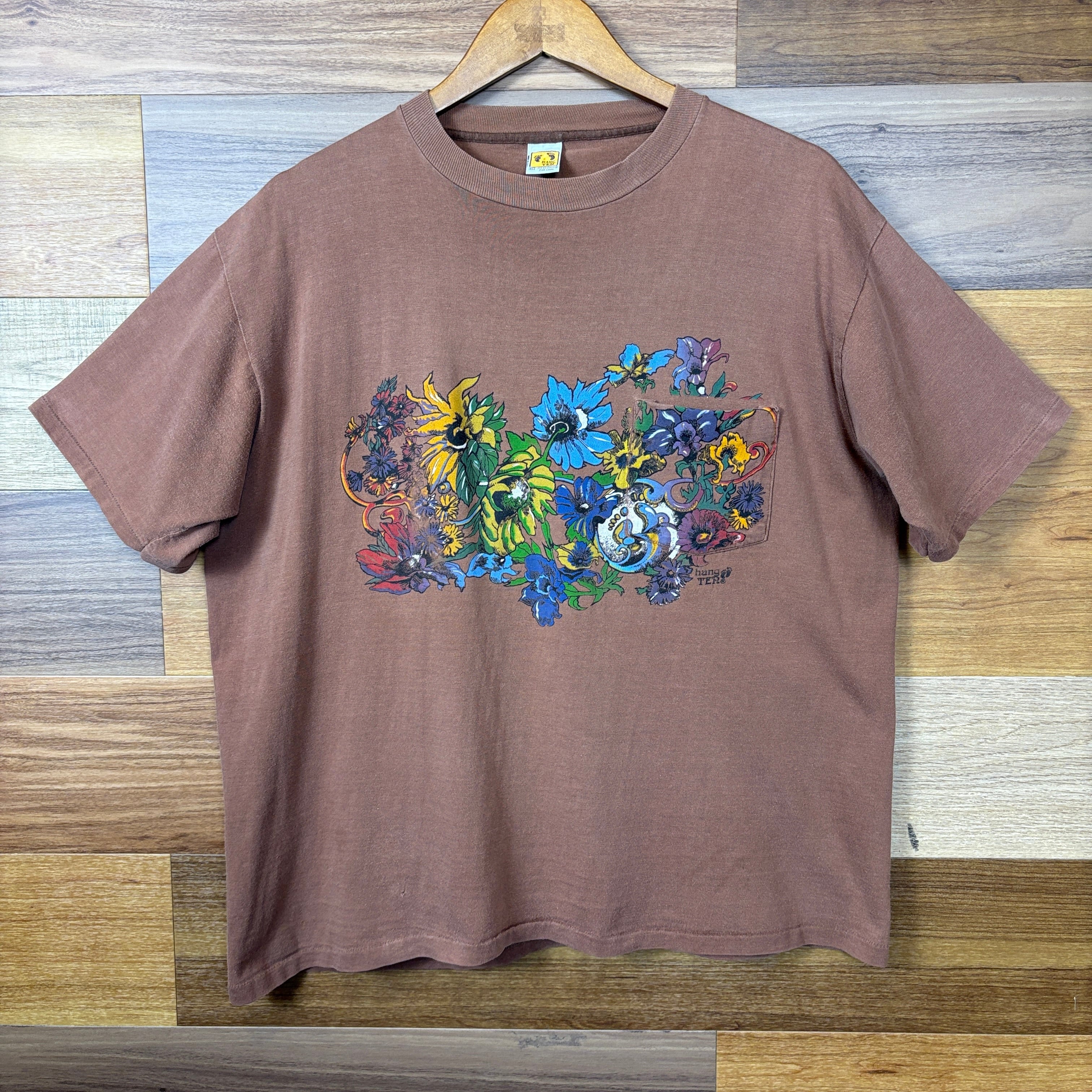 USA製 70s HANGTEN ハンテン ポケット付き T-sh Tシャツ サイズ メンズ XL シングルステッチ アメリカ製 70年代 OLD SURF オールドサーフ VINTAGE ビンテージ ヴィンテージ ストリート アメカジ 古着 r26031108