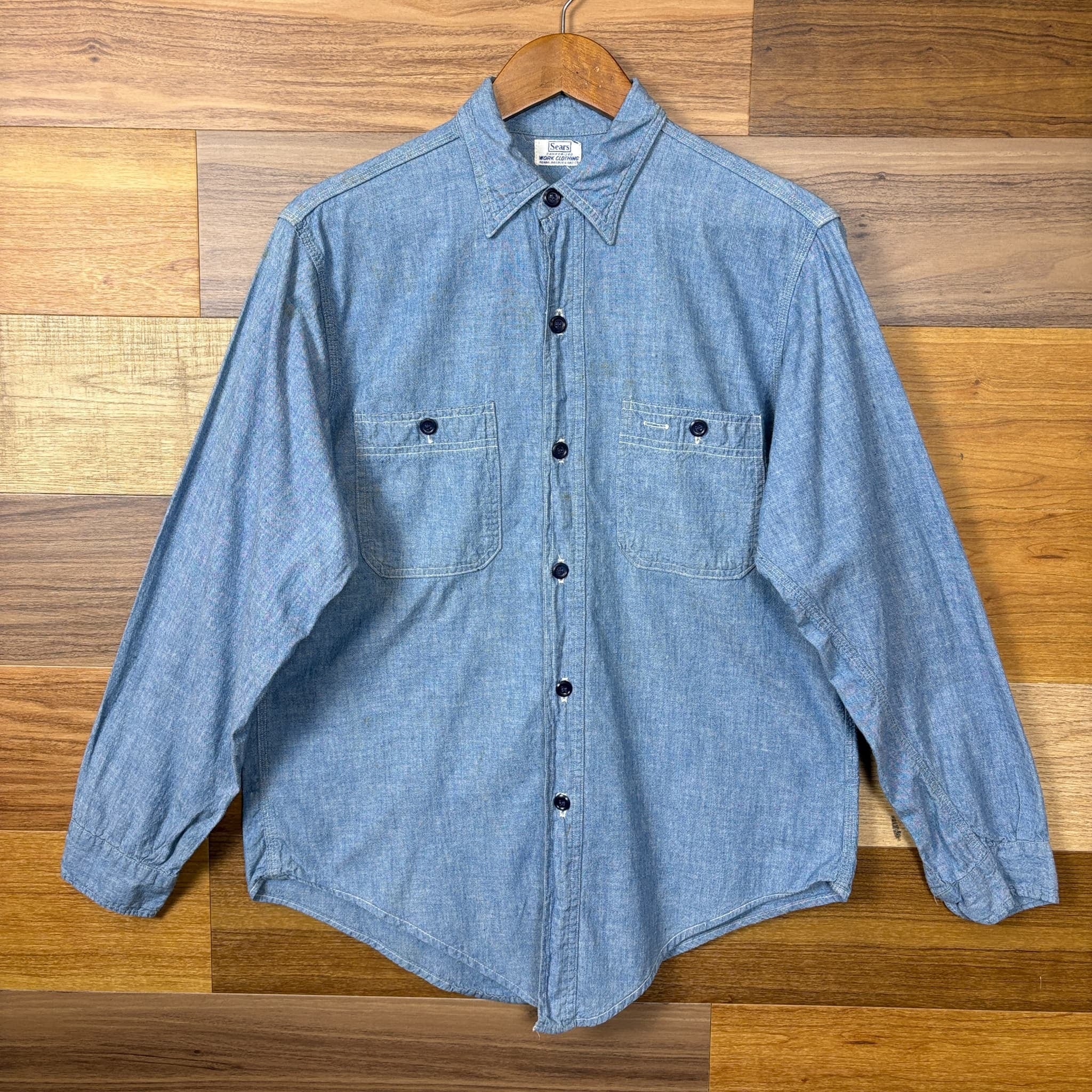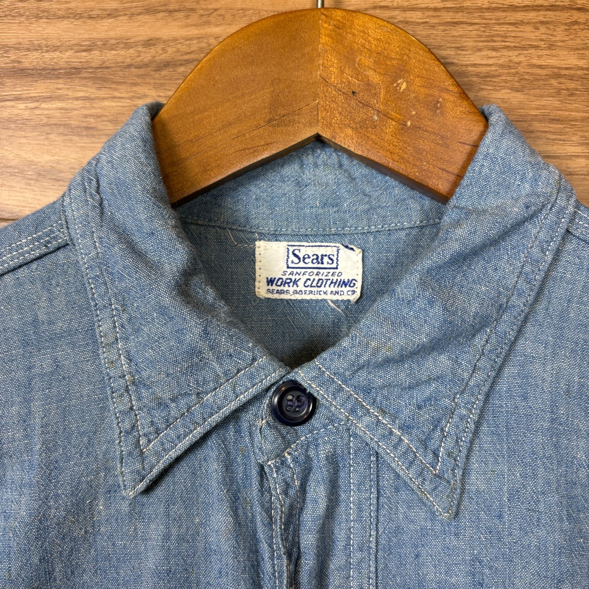 50s Sears Chambray Shirt シアーズ シャンブレーシャツ 長袖シャツ サイズ メンズ M位 50年代 VINTAGE ビンテージ ヴィンテージ ストリート アメカジ 古着 r26031114