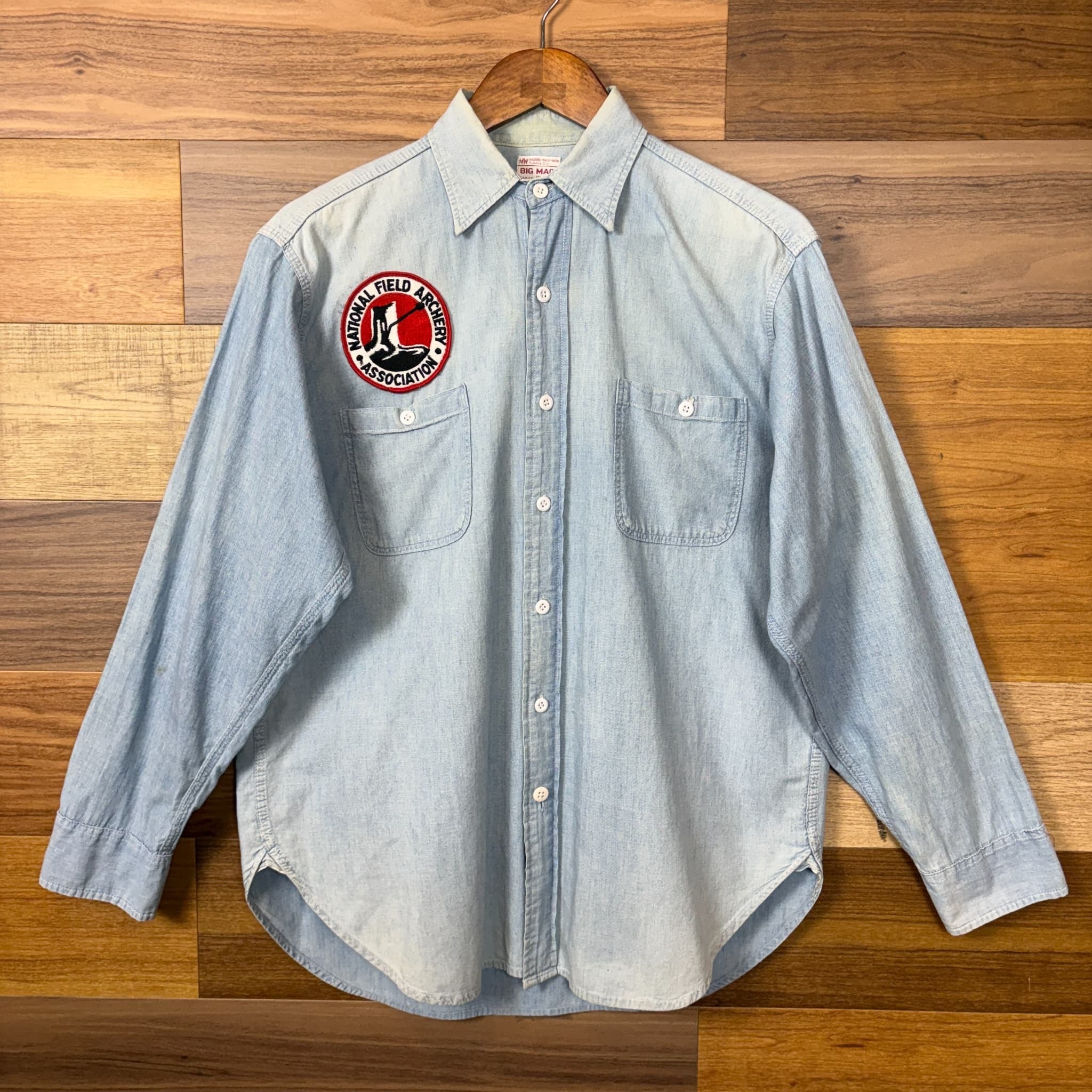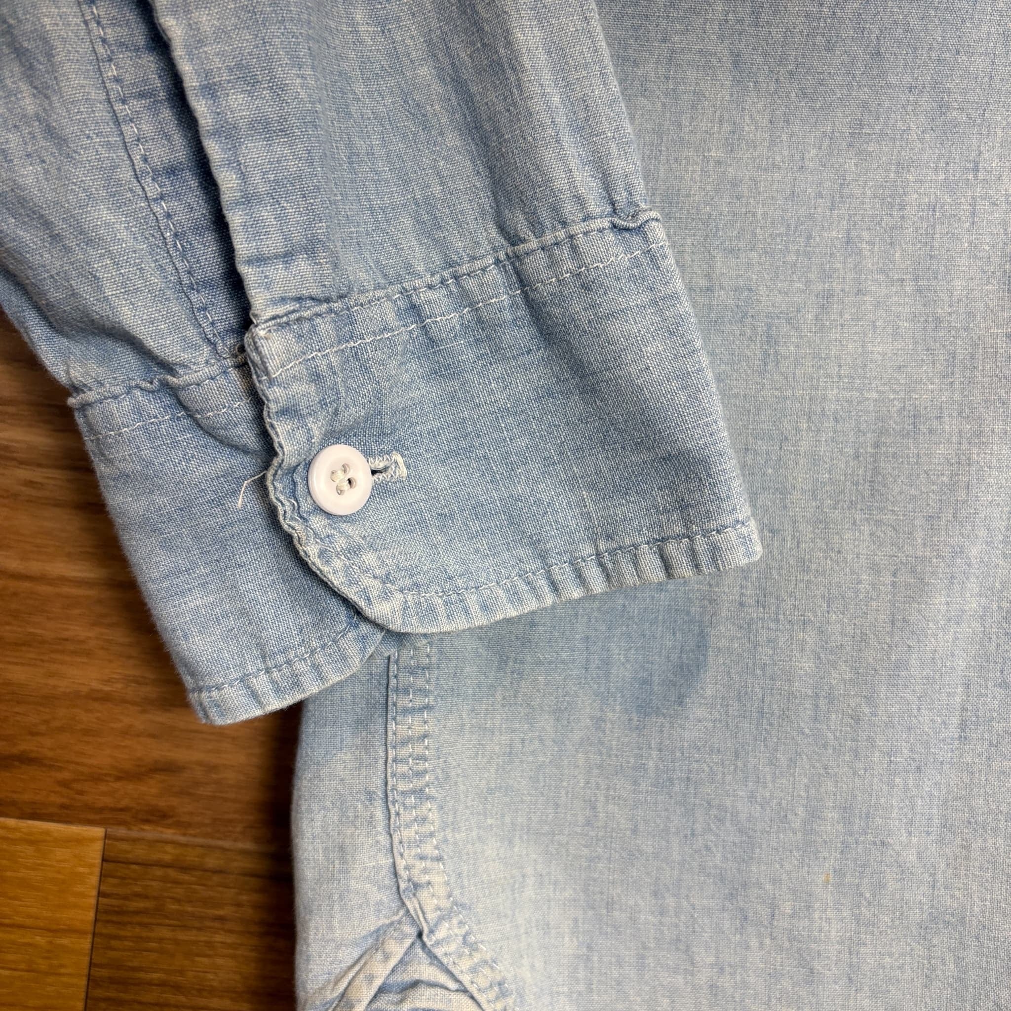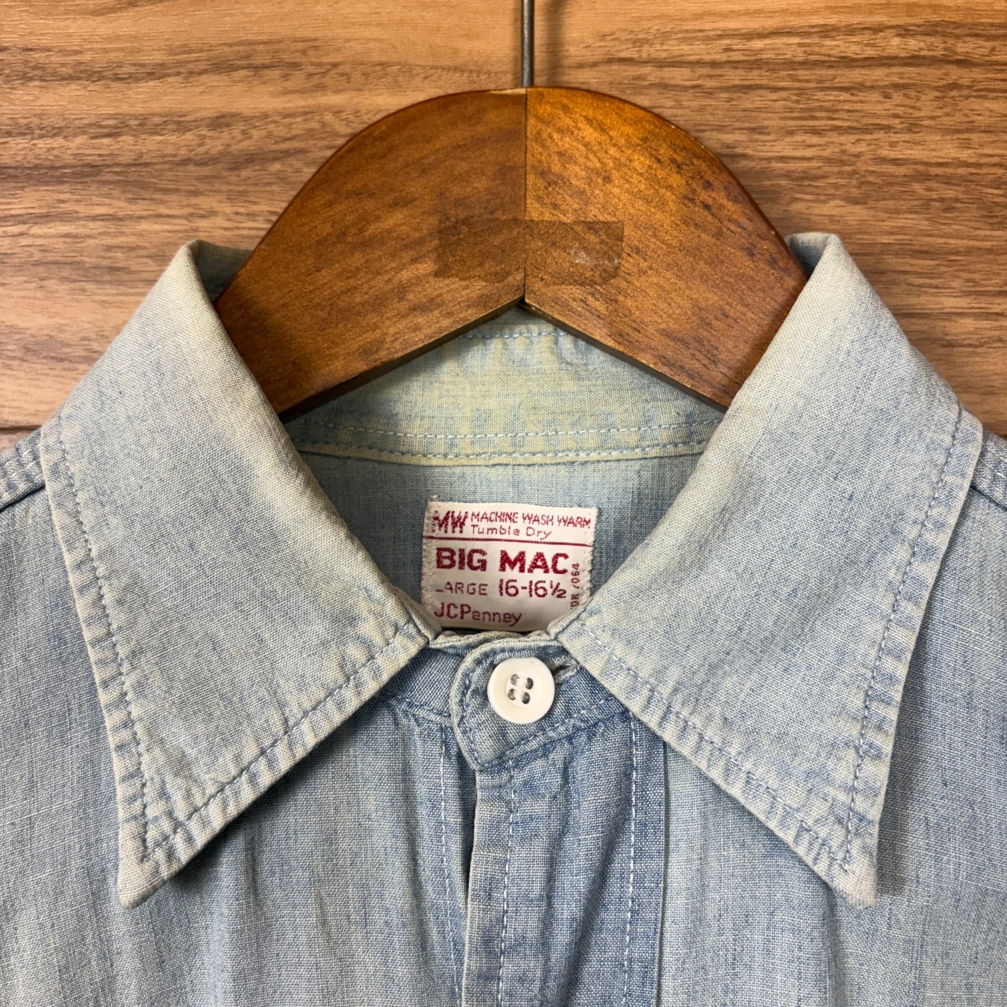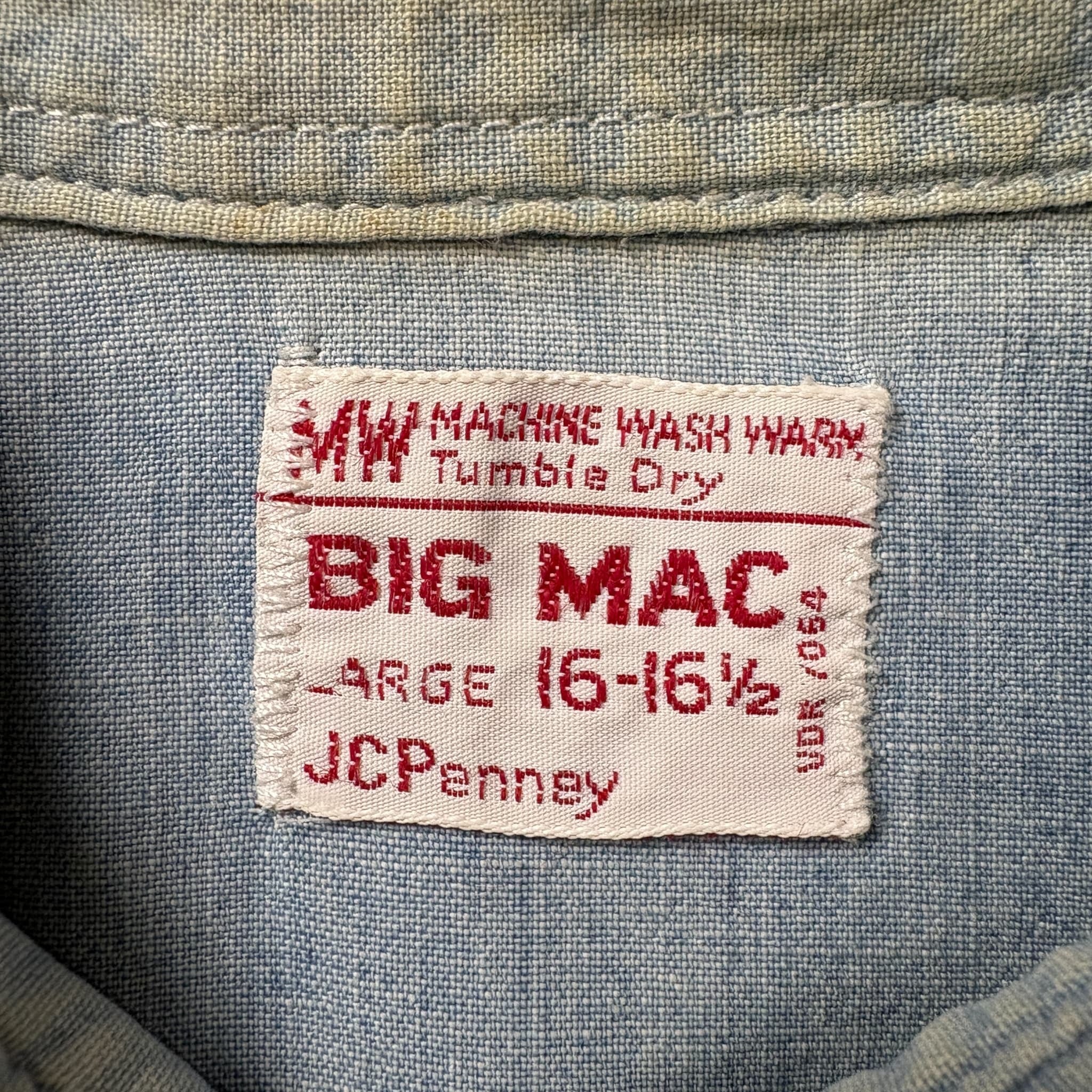 GOOD FADE マチ付き 50s J.C.Penney BIG MAC Chambray Shirt ビッグマック シャンブレーシャツ 長袖シャツ サイズ メンズ L位 50年代 VINTAGE ビンテージ ヴィンテージ ストリート アメカジ 古着 r26031115