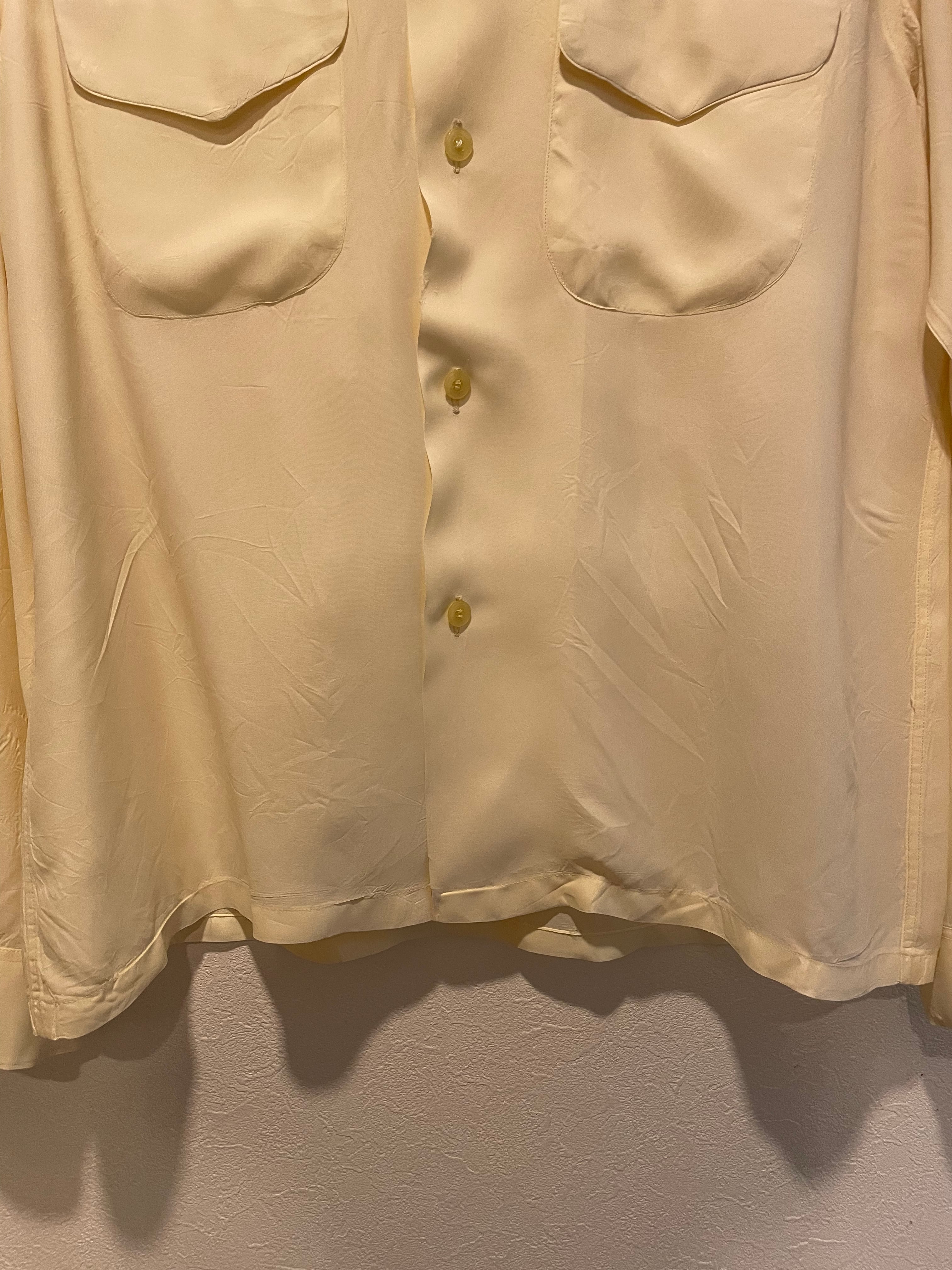 ■ 50年代 vintage Brewstar レーヨンシャツ 長袖 ロングスリーブ トップス アイボリー メンズ M 50s ビンテージ ヴィンテージ