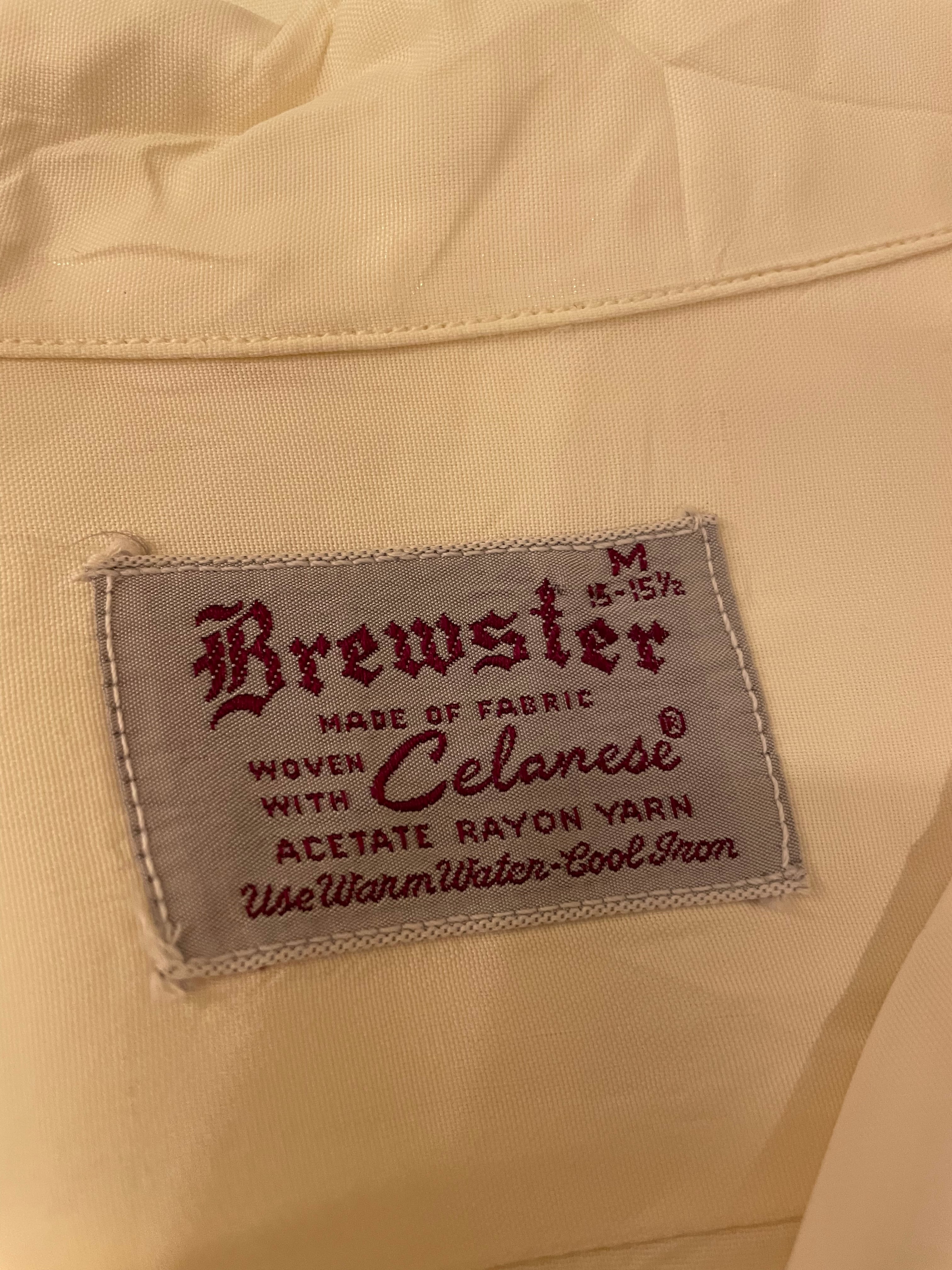 50年代 vintage Brewstar レーヨンシャツ 長袖 ロングスリーブ トップス アイボリー メンズ M 50s ビンテージ ヴィンテージ
